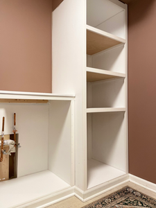 I could not be more pleased with how this turned out. Since these shelves are going to be left open, it was important to me that they looked finished even though everything will be painted the same color.